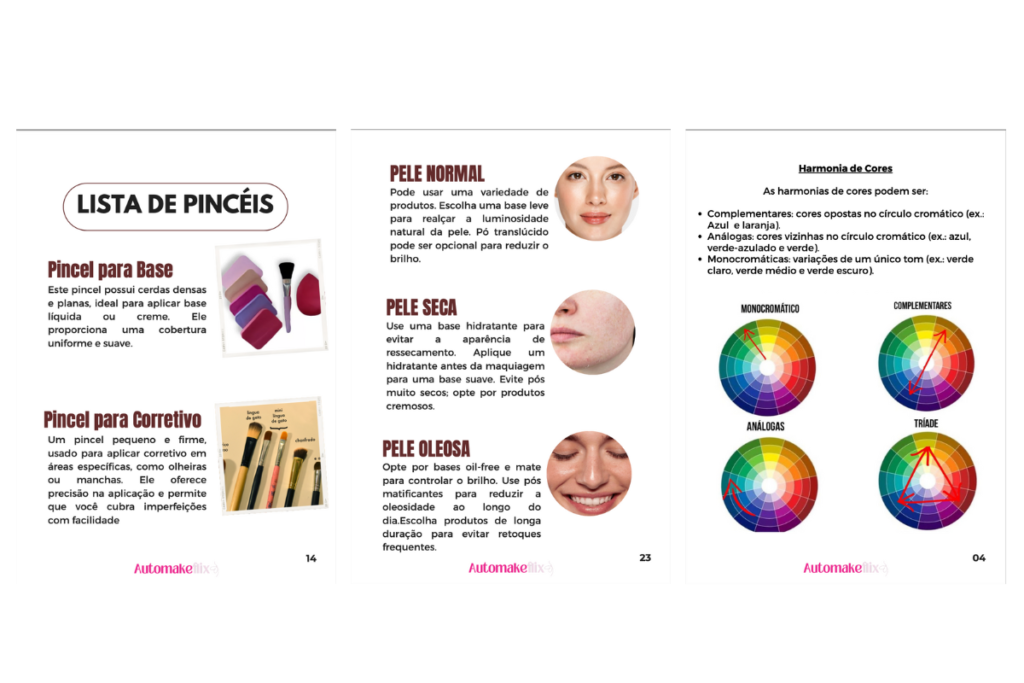 Aplique esses conhecimentos e melhore a qualidade das suas maquiagens e durabilidade com os ebooks que somam mais de 80 páginas de muito aprendizado.